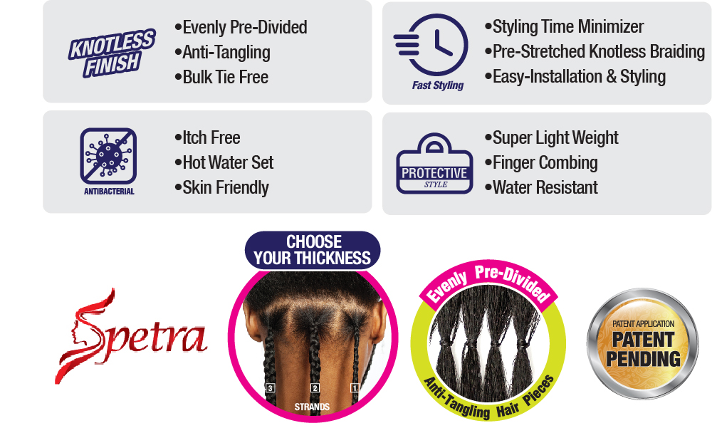 Introducing the new Easy Knotless Braid™, created by Afri Naptural® to ease every part of your hair styling. You no longer have to spend hours dividing your hair because this innovative braiding hair features bundles with evenly pre-divided hair pieces that allow you to start your braided styles directly from the pack. In addition, the anti-tangling technology used to perfectly divide the hair assures an easy installation free of tedious hair tangling. No more wasting time, just grab from pack and braid non- stop with Easy Knotless Braid™.