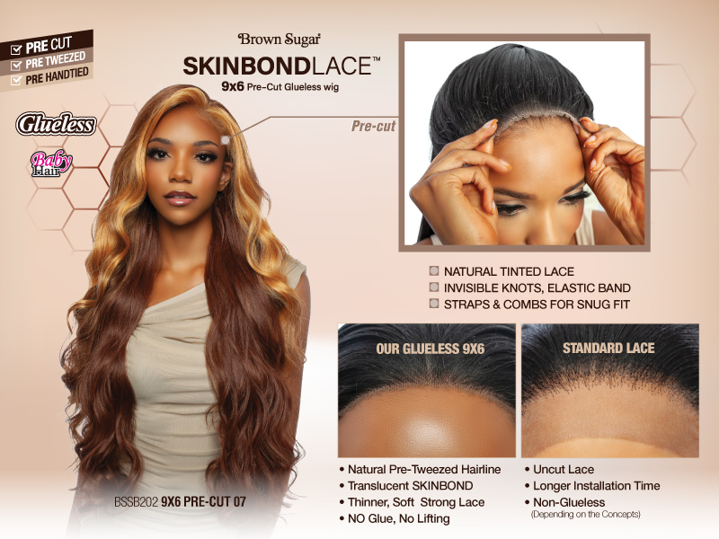 -Experience the freedom to "Switch It Up, Style It Up!" with the Brown Sugar SkinBondLace, Pre-cut Glueless Lace Front Wig.